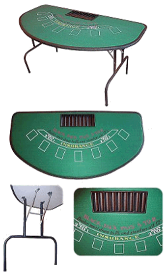 This very solid folding Blackjack table is 60" x 30" x 30". The surface is covered with the