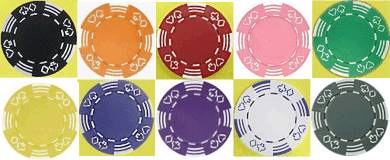 These 39 mm diameter casino sized chips are 11.5 grams in weight. They are