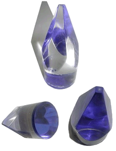 This marker produced from solid acrylic and is clear with a blue bottom. The